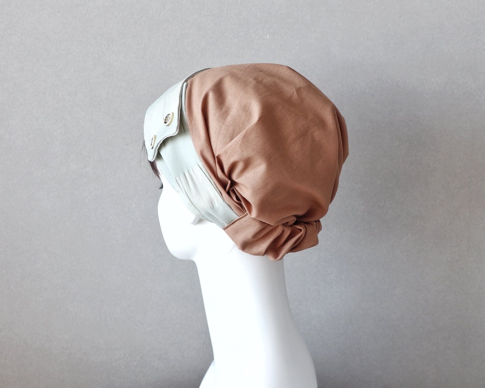 内布を折り畳めばヘアターバンとしてもお使いいただけます。