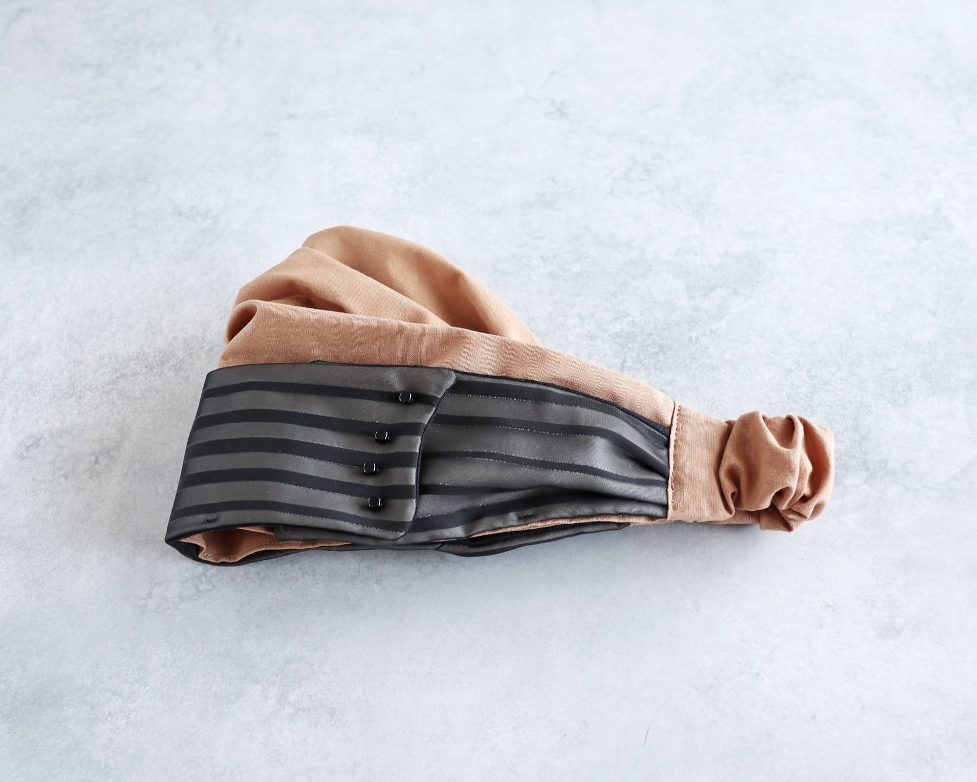 内布を折り畳めばヘアターバンとしてもお使いいただけます。
