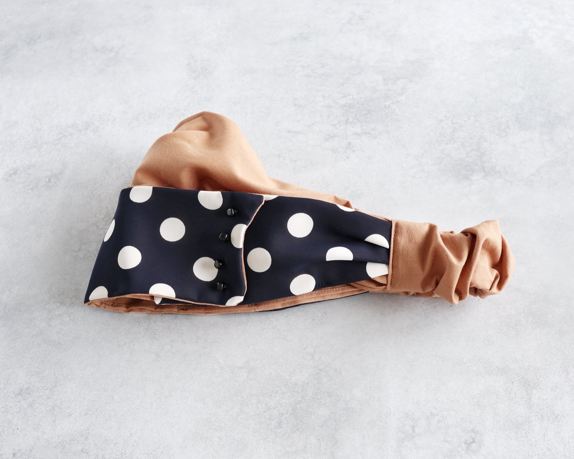 内布を折り畳めばヘアターバンとしてもお使いいただけます。