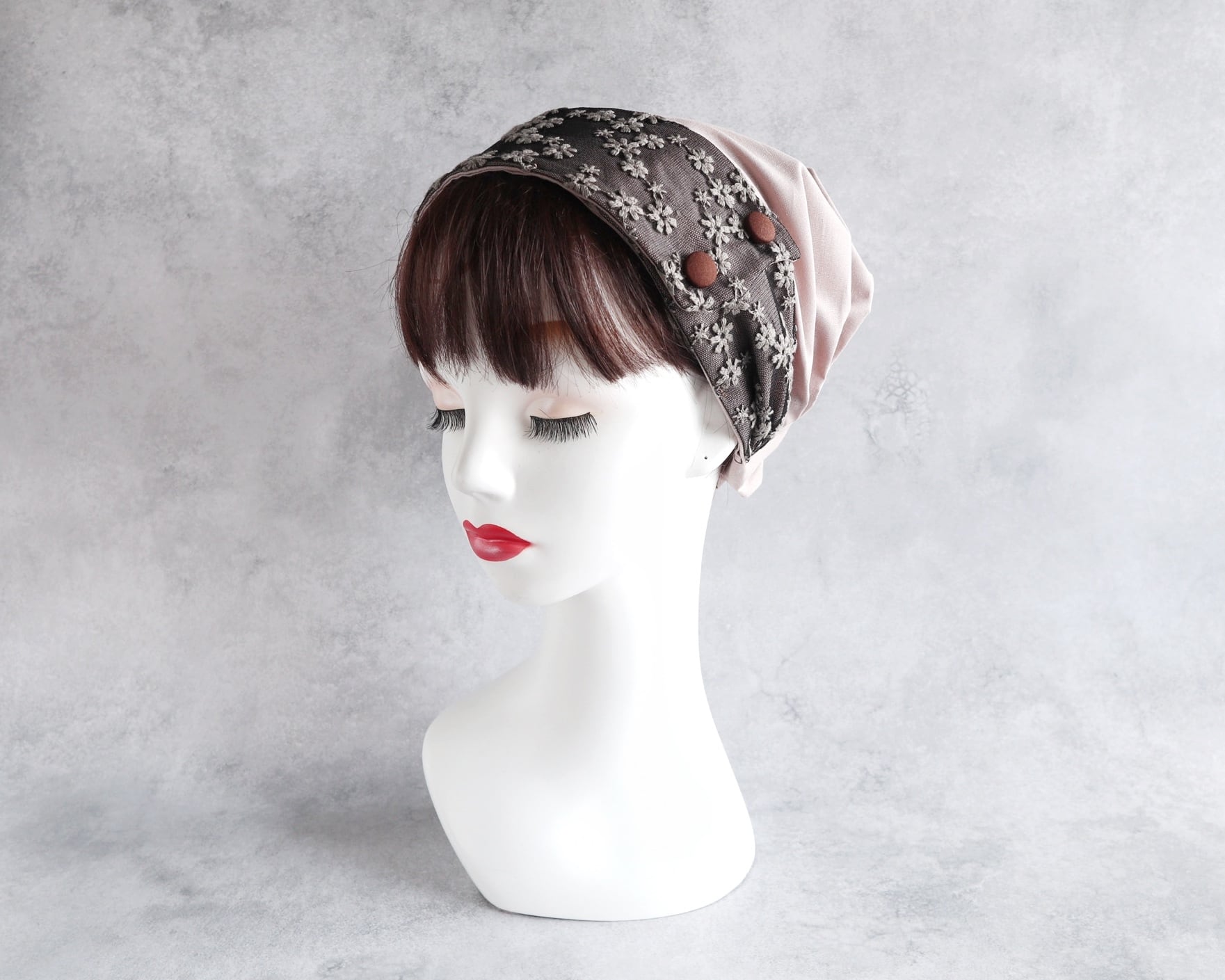 内布を折り畳めばヘアターバンとしてもお使いいただけます。