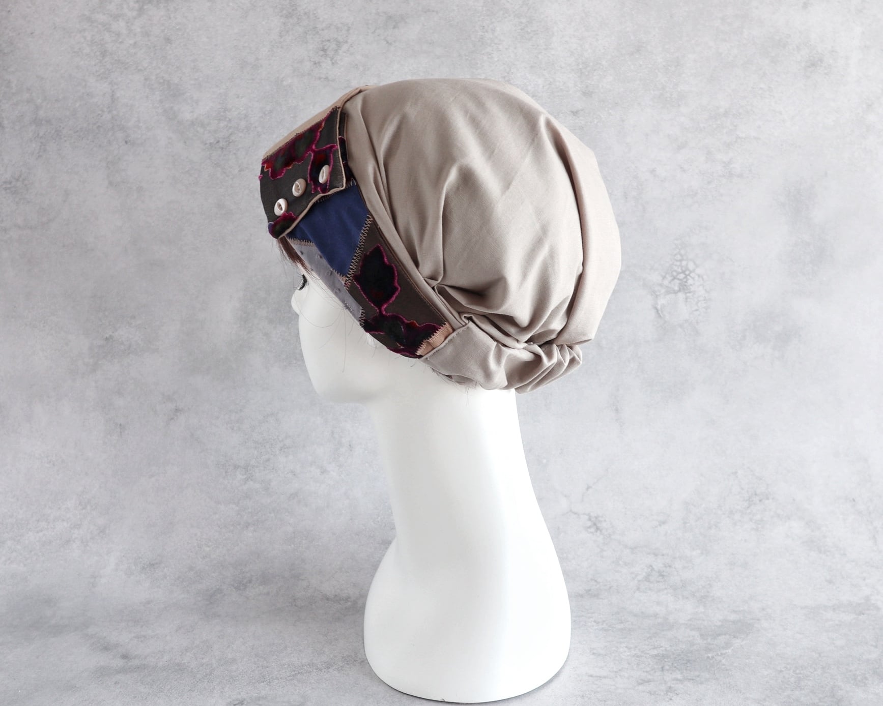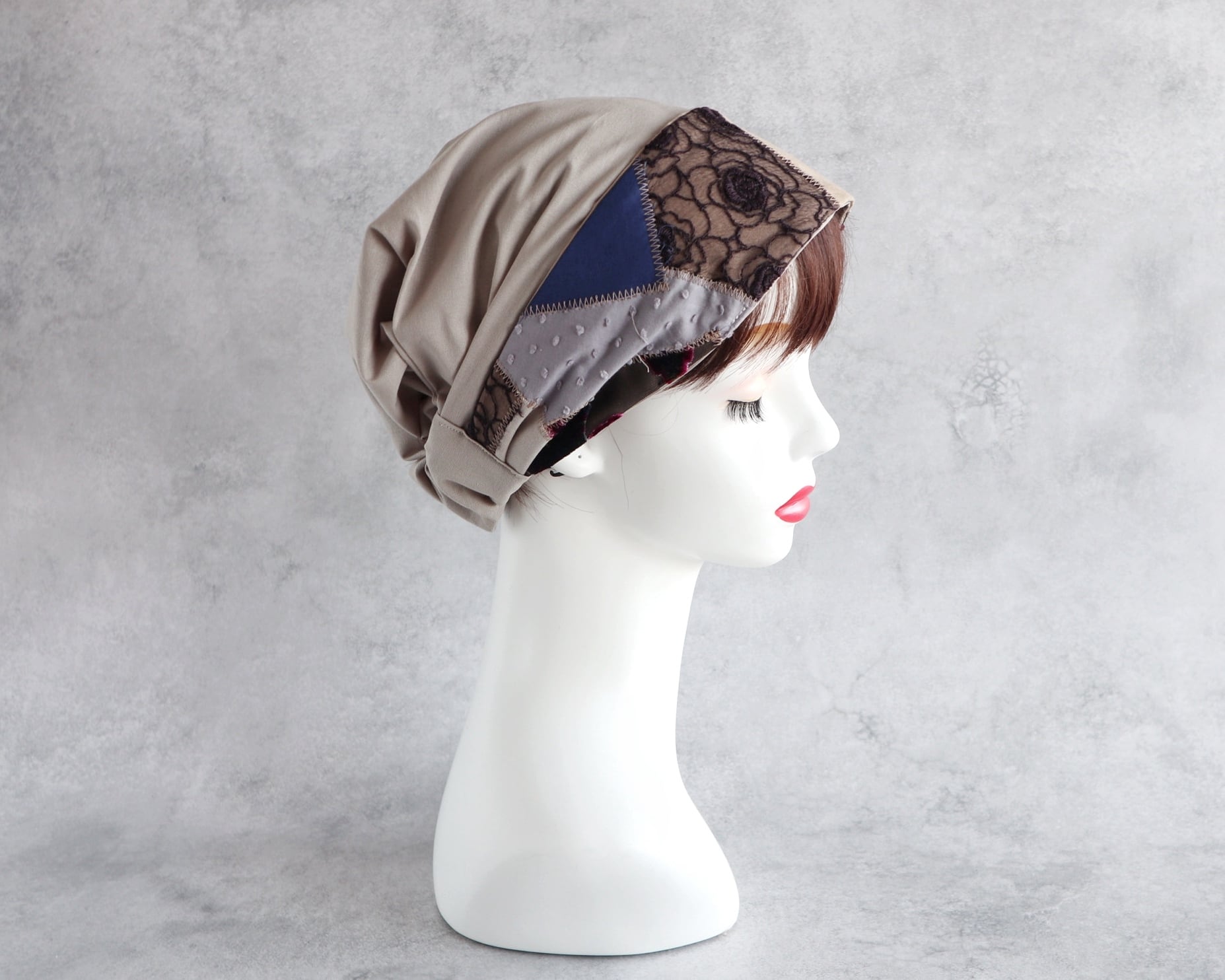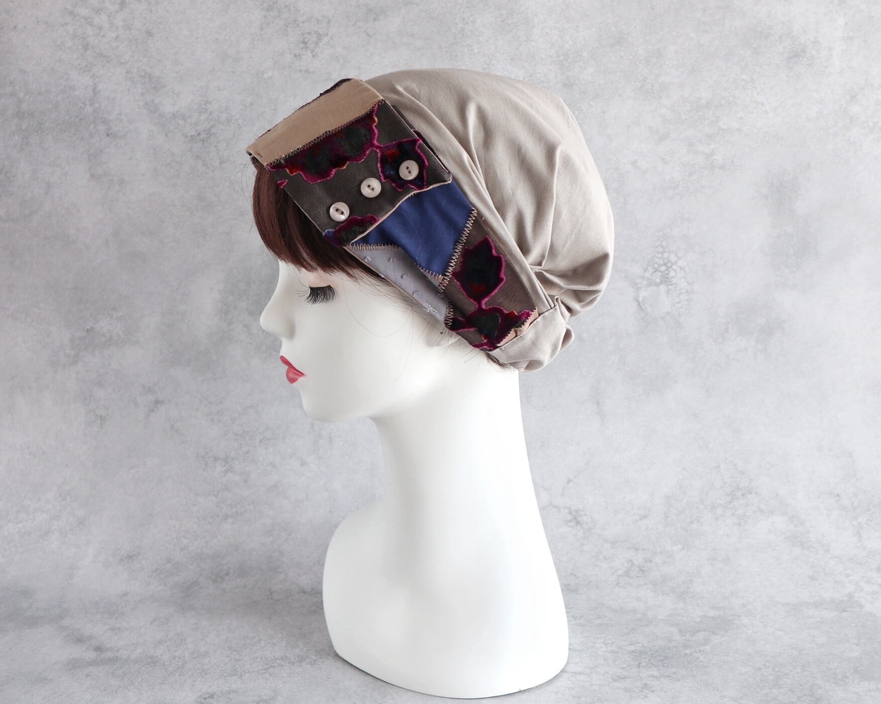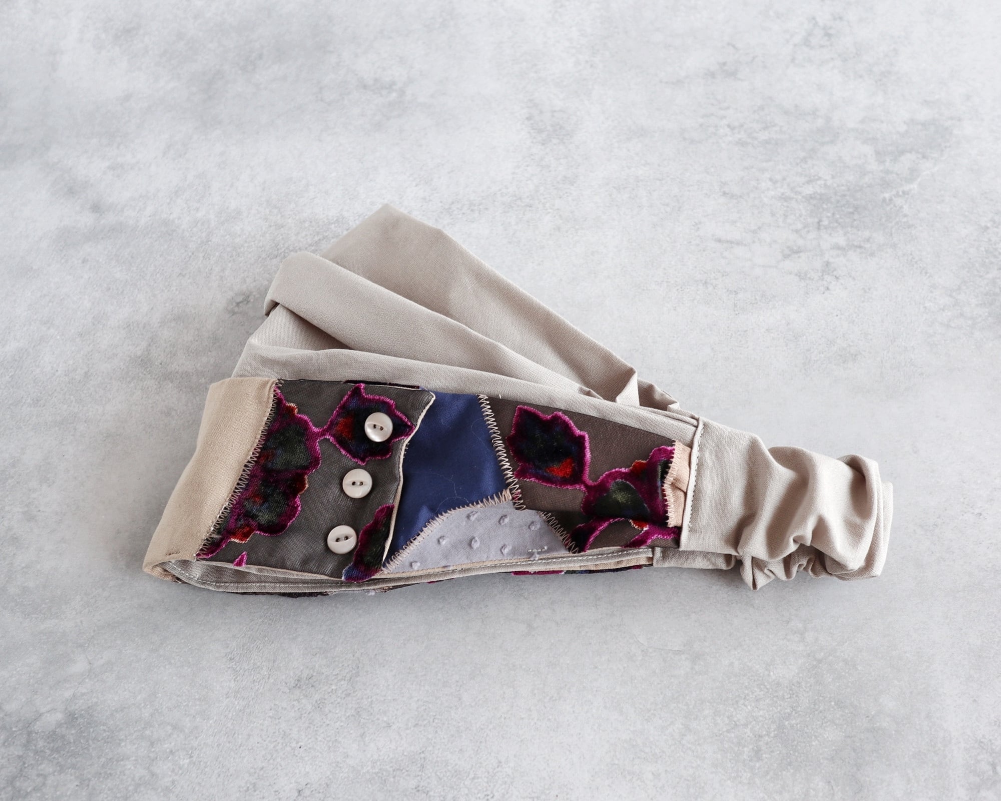 内布を折り畳めばヘアターバンとしてもお使いいただけます。