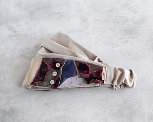 ボタン付きサッシュベルト(パッチワーク/レトロな花柄)とグレージュカラー: Button sash belt (patchwork / retro flower pattern) and grey color.