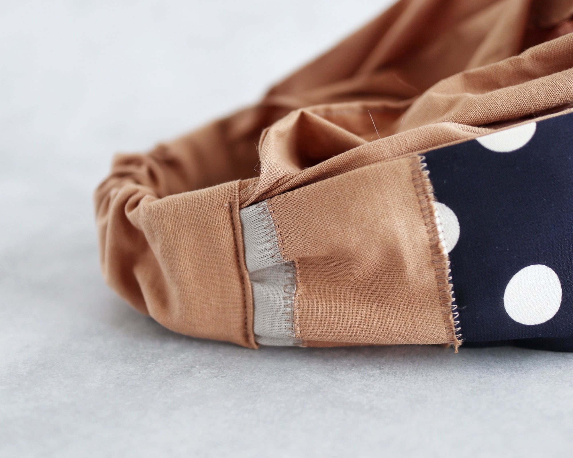 内布を折り畳めばヘアターバンとしてもお使いいただけます。
