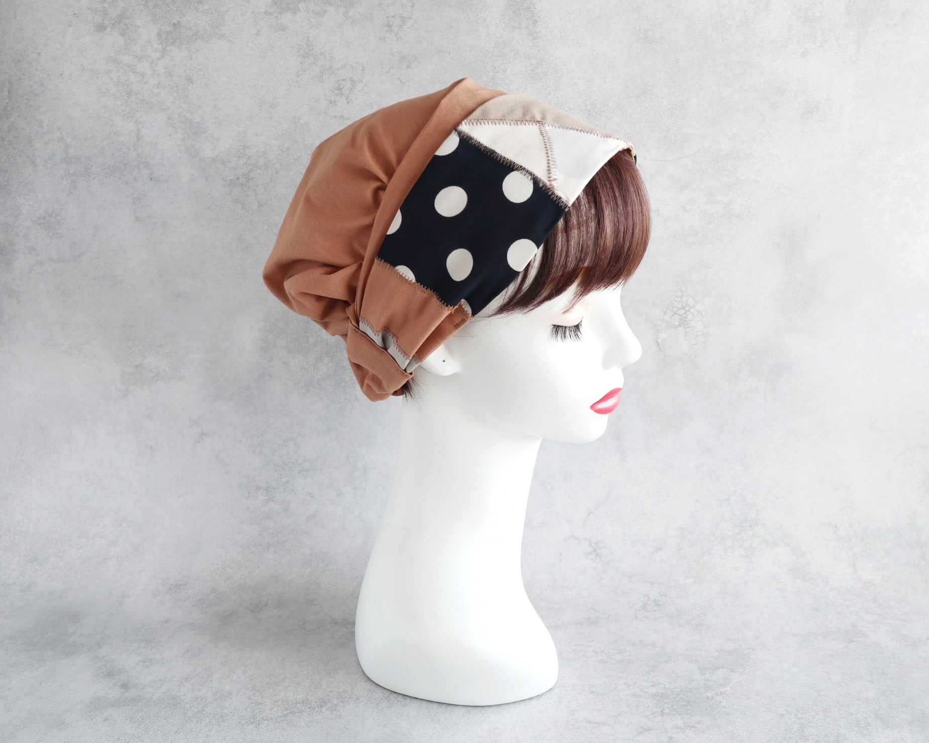 This is a patchwork style hair turban carefully made one by one with an exquisite balance of cute flower patterns and playful polka dots.