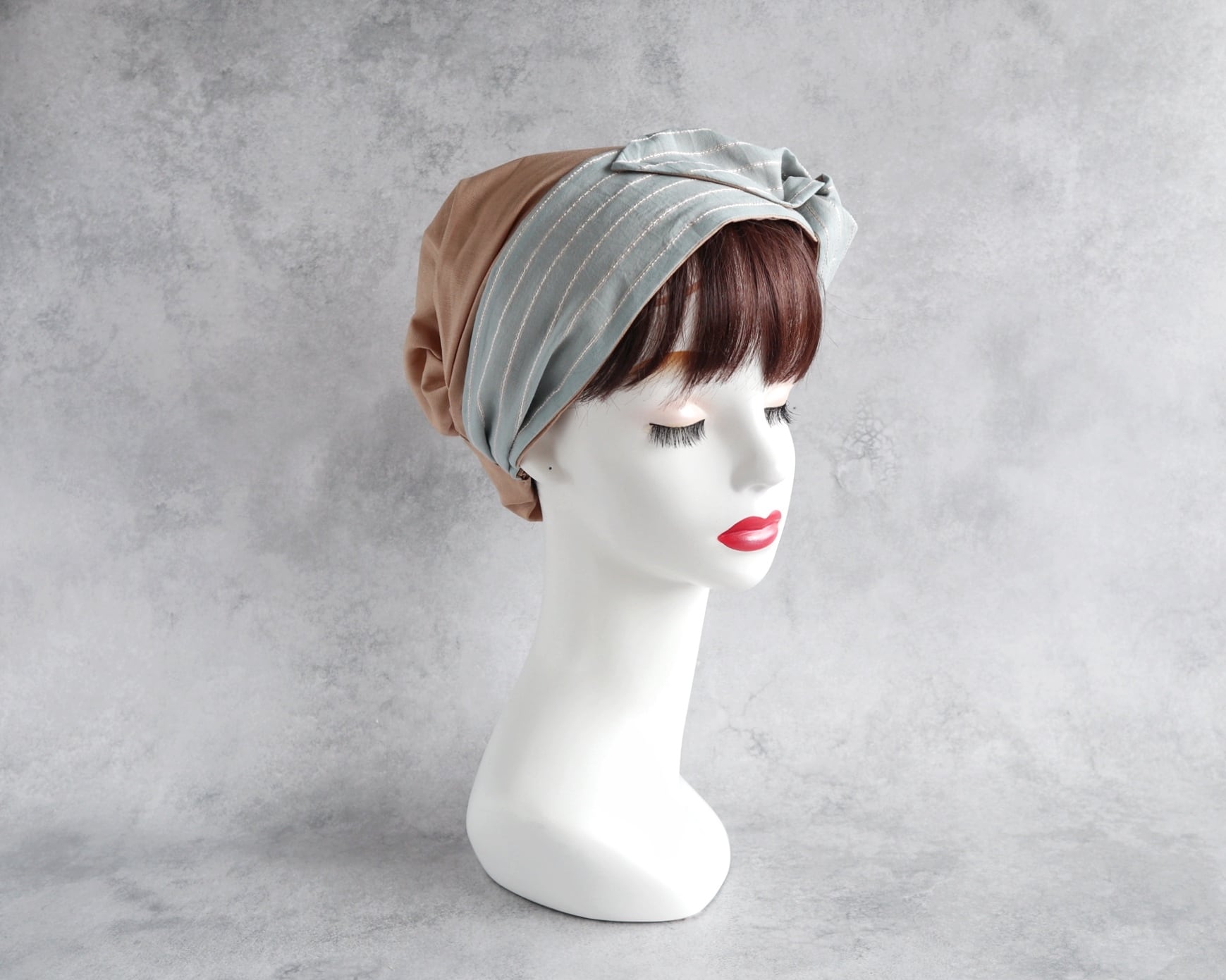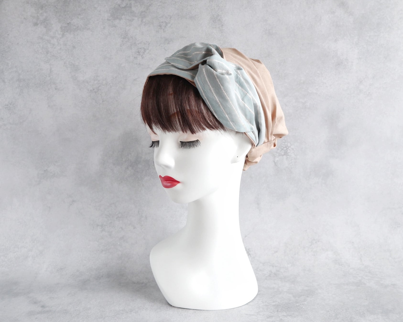 内布を折り畳めばヘアターバンとしてもお使いいただけます。