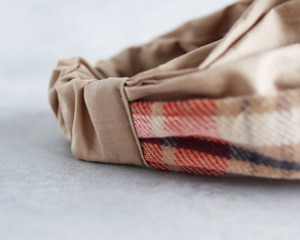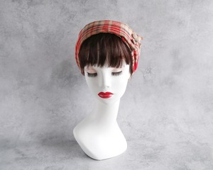 チェリー色のラインが映えるタータンチェック柄のヘアターバンです。