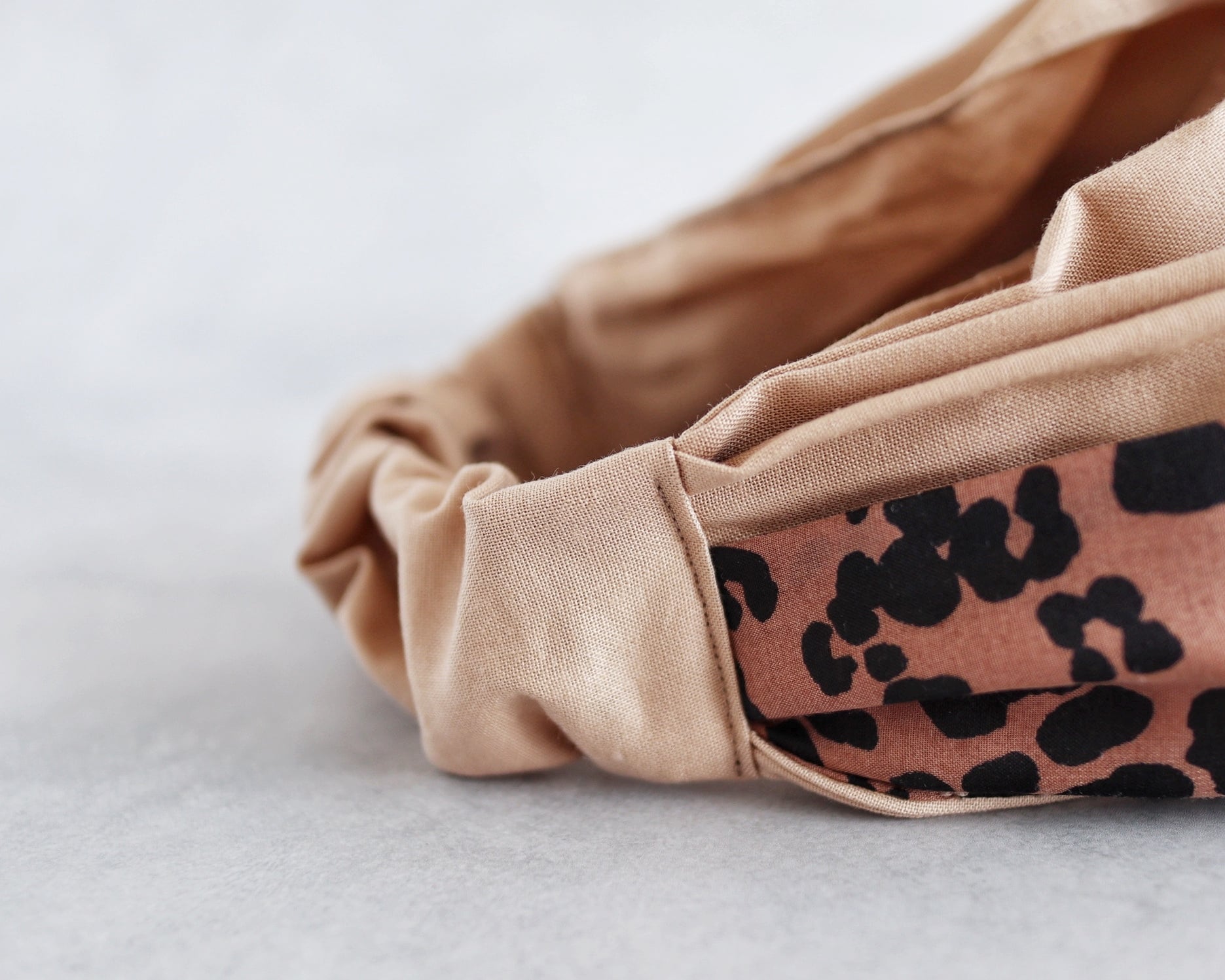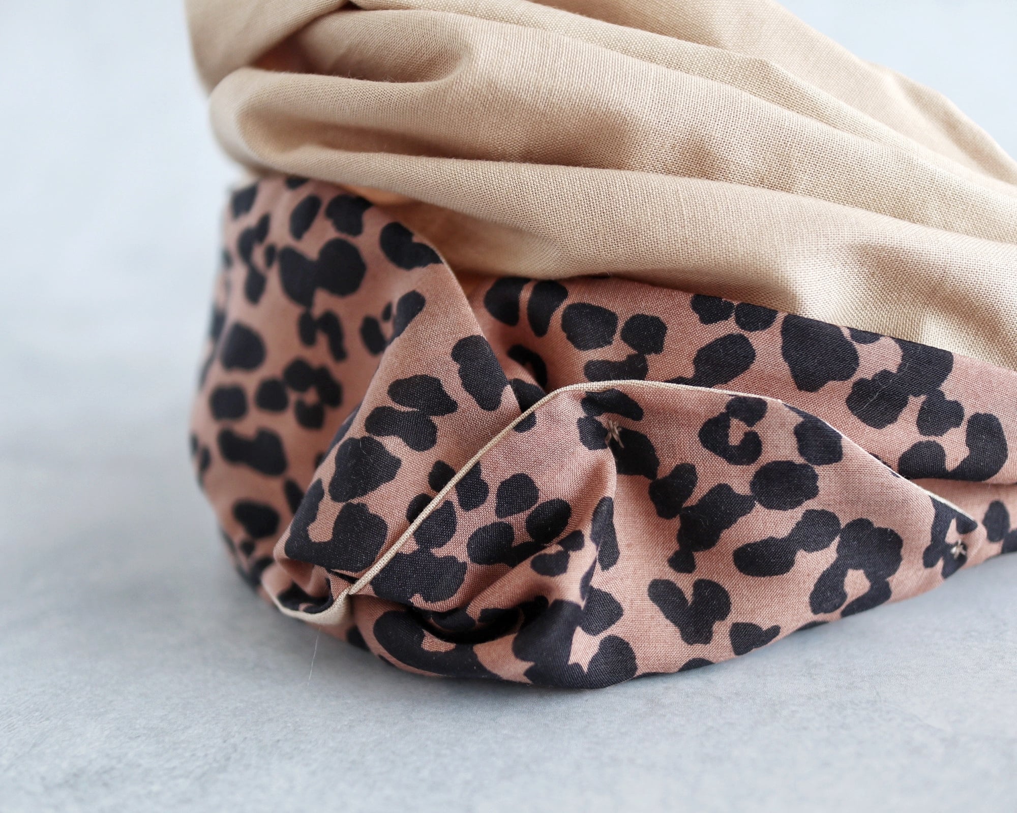 This hair turban has an attractive animal pattern with an elegant paint touch.