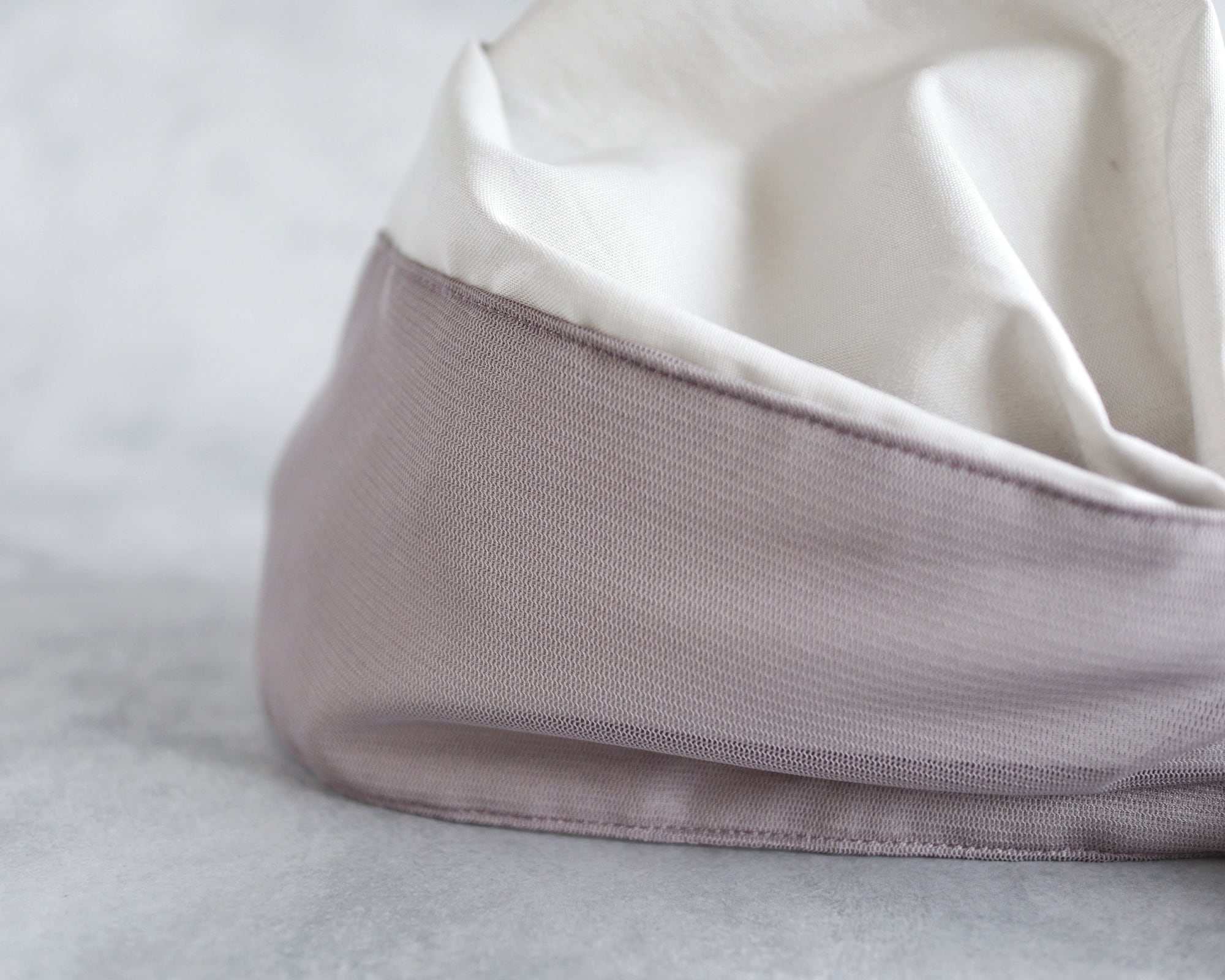 内布を折り畳めばヘアターバンとしてもお使いいただけます。